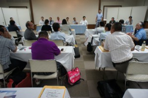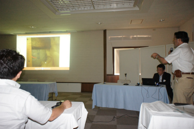 会場のホテルへ戻り、プロジェクターによる現場等の説明会を行いました。